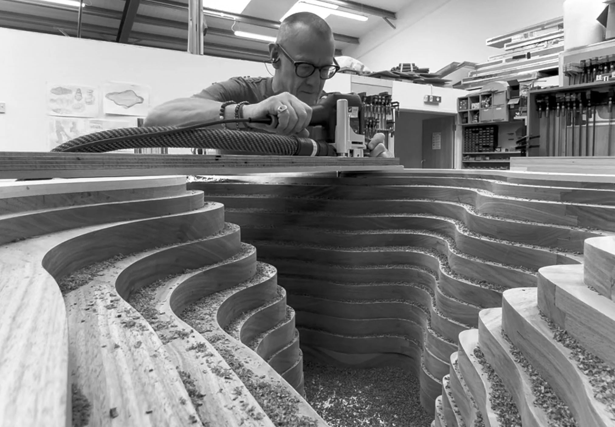 He later established and led a design consultancy within Steer Group, that grew into an award-winning, international practice before stepping down to return to hands-on making in 2023. Phil then spent a year training with acclaimed furniture designer Marc Fish at Robinson House Studio in East Sussex, graduating with Distinction in 2025, and in the same year received the Tom Faulkner Award for Distinctive Furniture Design at the New Designers Exhibition in London.